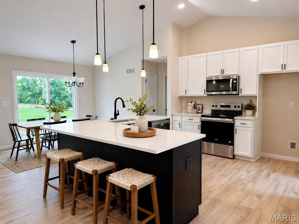 Final Opportunities for homes that back to trees. This popular Folkstone plan is modern, inviting and inviting. Upgraded hard surface flooring throughout the common areas of the home, upgraded lighting, and modern black hardware. Vaulted ceilings in the great room and kitchen. Huge island kitchen with plenty of room for seating in an L shaped design. Step out onto your back patio and spacious backyard that backs to trees. This home is walkable to Target, Aldi, and nearby Phoenix park and walking trails. Washington is a fantastic place to call home. Visit Stone Bridge in Washington today and plan on staying!Welcome home to comfort, style, and convenience in Washington! This new 3 bed / 2 bath home offers the lifestyle buyers are seeking, all at a great price point! Bright, open living spaces with a seamless flow from the living room to the updated kitchen featuring stainless appliances, ample cabinet storage, quartz countertops and large island seating - perfect for everyday living and entertaining.You'll love the primary suite with a private bath and generous closet space. Two additional bedrooms are ideal for guests, kids, or a home office. Neutral finishes and modern lighting create a fresh, welcoming feel throughout.Step outside to a large backyard with patio - easy to maintain and great for grilling, pets, or weekend gatherings. New home means a new warranty from the builder, Northern Star Homes.Located near shopping, dining, parks, and top-rated schools with quick access to Hwy 47 and Hwy 100 for commuting. This home delivers the space, style, and value buyers want in today's market. Don't miss out. Schedule your showing today!Northern Star Homes - your hometown builder.