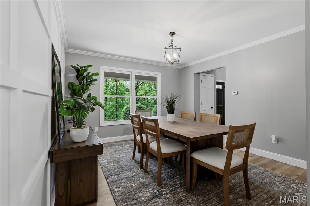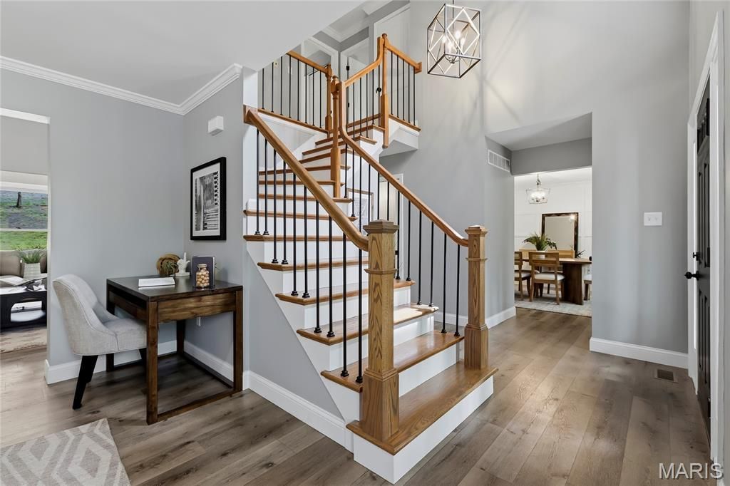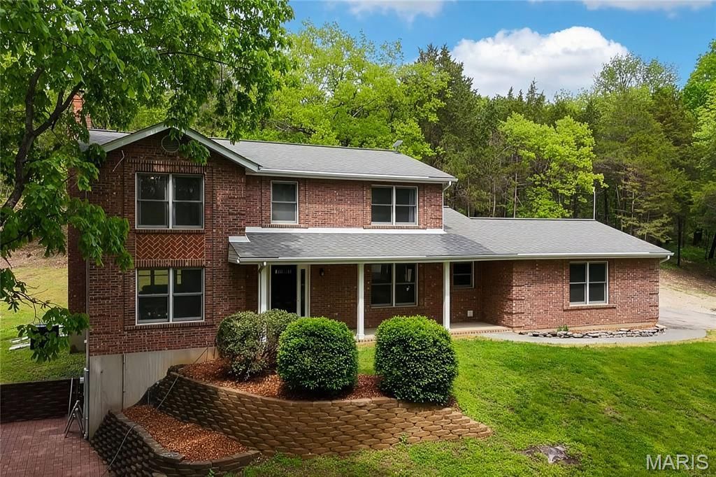 Stunning 2-story home renovated in 2022 and sitting on 5.45 acres located in the sought after Hunters Farm subdivision in Pacific! This home boasts over 3,000 square feet of living space including the finished lower level. The front door opens to the 2-story entry foyer with a coat closet, and opens to the formal dining room with an accent wall and the office/family room. The great room features a stone wood burning fireplace, bay window, and opens to the kitchen.The kitchen boasts 42 inch cabinetry, quartz countertops, stainless steel appliances, tile backsplash, island with a butcher block countertop, dining area, and a new coffee bar with a wine fridge (2023). The stylish powder room completes the main level. The second floor features the primary bedroom with dual closets, with bi-fold barn doors and one has custom shelving, accent wall, and a luxurious bathroom. The primary bathroom boasts a dual vanity, soaking tub, and a separate shower with a new tile surround (2023). A full hall bathroom and two additional bedrooms complete the second level. The finished lower level features a recreation room which could be converted to a 4th bedroom, full bathroom, and ample storage space. Other highlights include: new shed (2026), 2 car garage, and painted neutral colors throughout. Relax outside on the side paver patio or the covered front porch and enjoy the private 5.45 acre lot! There is a cleared area in the back for someone to potentially add an outbuilding or detached garage. Location could not be better - close to major highways, restaurants, shops, and schools!