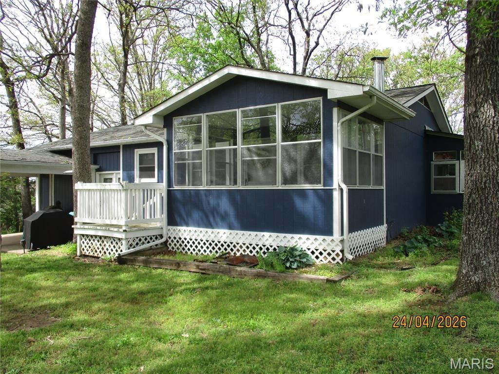 This cute cozy home comes with a good lake view. This home offers 2 bedroom 1 bath a very nice seasoned room and a family room with electric fireplace all comfortable areas to enjoy family and friends. Laminate and carpeting throughout. Wood stove in living room that heats the whole house plus propane heat. Nice kitchen to make your favorite recipes. Master bedroom has good space to arrange your furniture. Good size utility room. Covered carport for parking. Located 1 block from entrance road close to pickle ball courts, marina, country store and beach. Call today to preview this nice place. Seller is relocating and motivated to sell.