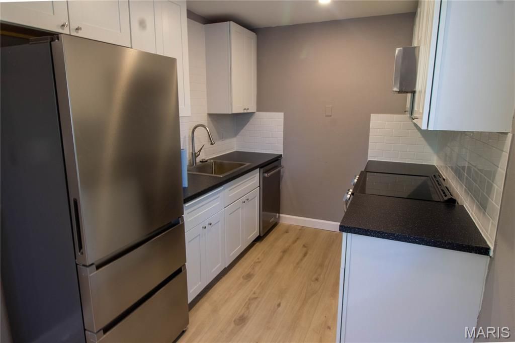 Step into modern living with this stunning, renovated 1-bedroom, 1-bathroom apartment in the heart of the highly sought-after Southwest Gardens. As you enter, you're greeted by a spacious living area bathed in natural light, featuring light-colored floors that create an airy, inviting atmosphere. The galley-style kitchen is a chef's dream, boasting stainless steel appliances, a dishwasher, white cabinets, a built-in microwave, an expansive sink, and chic white subway tile backsplash. The bathroom features trendy white and gray tile work, a pristine new tub, and modern light fixtures. Retreat to your generously-sized bedroom, where gorgeous floors and ample space accommodate a king-size bed with ease. Imagine being minutes away from grocery stores, the serene Tower Grove Park, and the quaint charm of Cafe Royal. Plus, with easy access to public transit, your daily commute becomes a breeze.