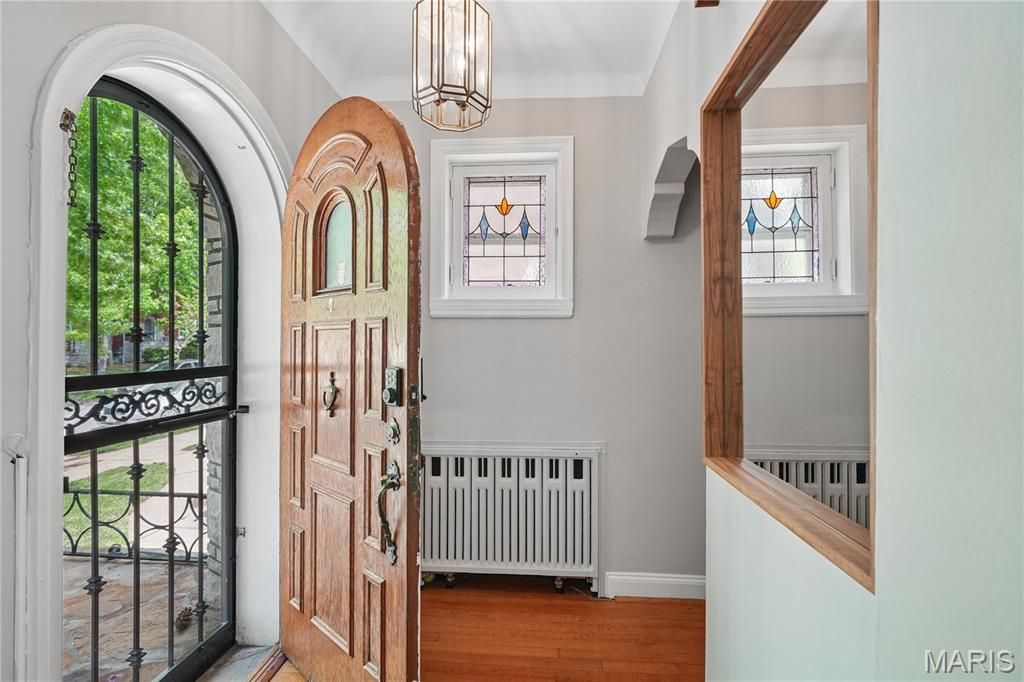 Gorgeous two-story Tudor style Gingerbread home on a picture perfect non-through street in Princeton Hieghts/ South Hampton. Inside is freshly painted throughout, loaded with charm and ready to move in. You'll love the stained glass windows and gorgeous natural woodwork throughout. The kitchen has white cabinets, tile backsplash and stainless appliances. Additional family room or sitting area in back. 2 bedrooms and full bath complete the main floor. Upstairs are 2 more bedrooms including the huge primary bedroom plus updated full bath and bonus space in the hall, perfect for a desk or kids area. Outside is the true show stopper. Get ready for the garage of your DREAMS with room for 2 cars and then some. It's already equipped with a 220 car charger and additional front garage door into the yard and stunning covered poly/epoxy non-slip patio/outdoor kitchen area. There's also a top of the line 7 seater salt water hot tub with wrap about steps that can stay for an additional $10k (retails for about $30k!). You'll never want to go inside! Low maintenance and pet friendly turf yard keeping things green year-round. The basement offers more living space including a ventless gas fireplace. So many updates including: roof '21, Electric panel '23, HVAC and 2nd floor mini-split system '17, tankless hot water heater, tuckpointed porch '26, water filtration system, pex plumbing, windows and a fabulous custom arched storm door. All this in an ideal location so close to Salt and Smoke, Mom's Deli, Francis Park and all the fun on Macklind.
